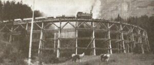 Dienstbahnviadukt der BLS bei Blausee, 1912; ähnlich war wohl die Konstruktion des Bauviadukts für den Bahndamm in Lenzburg, von welchem wir leider keine Aufnahme haben.