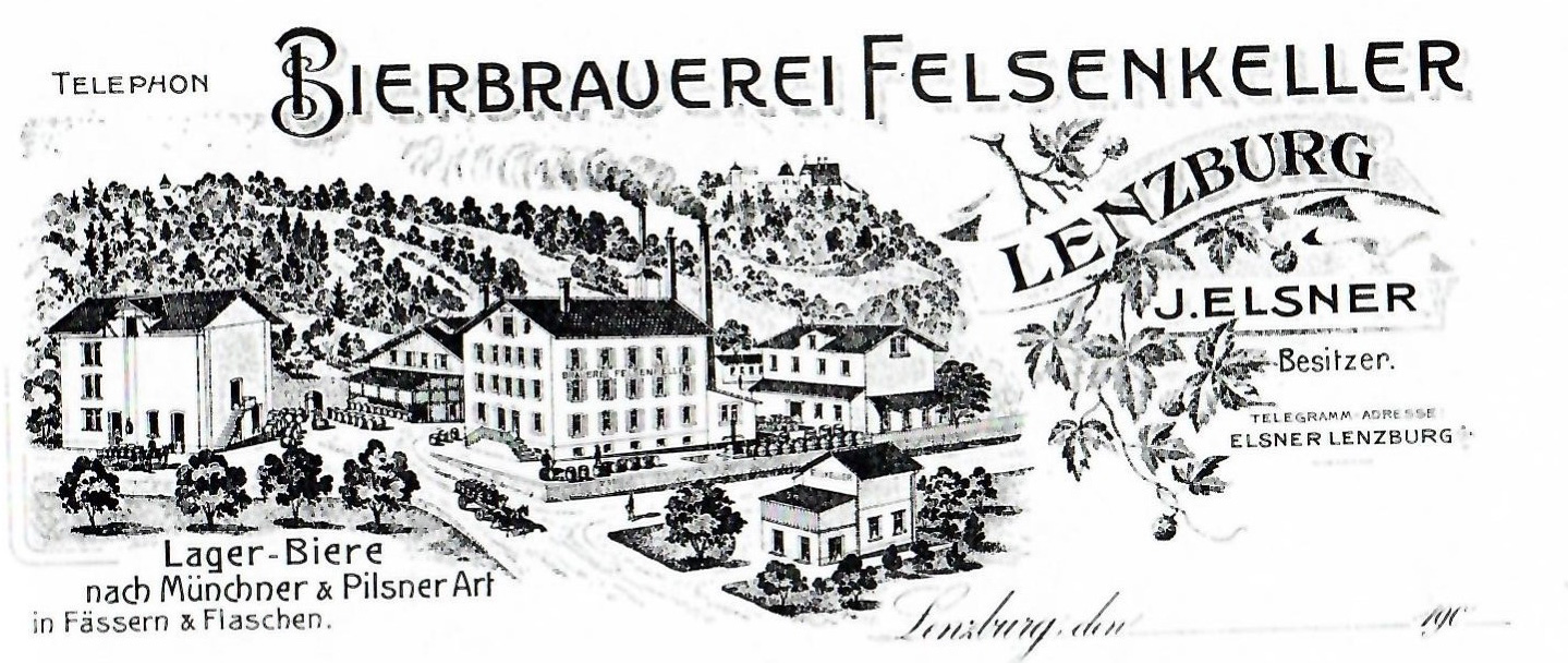 Die Bierbrauerei Felsenkeller auf einem Briefkopf Elsners von 1901