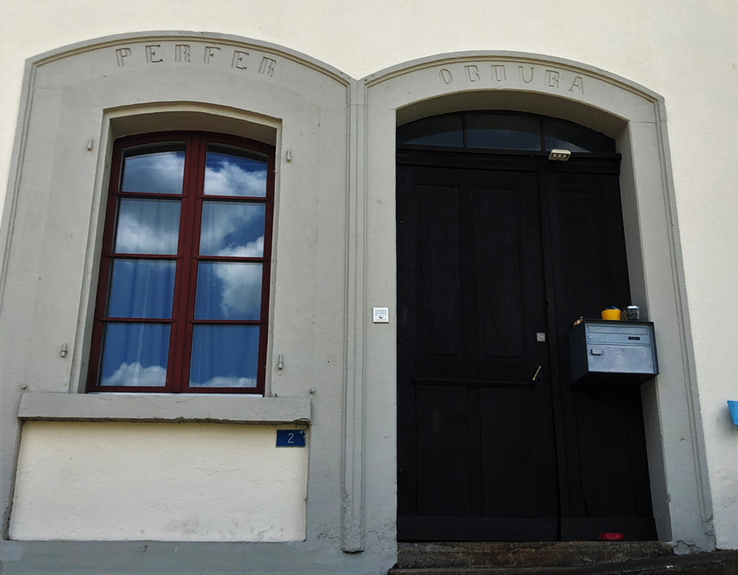 Inschrift über Türe und Fenster der ehemaligen Brauerei Felsenkeller.